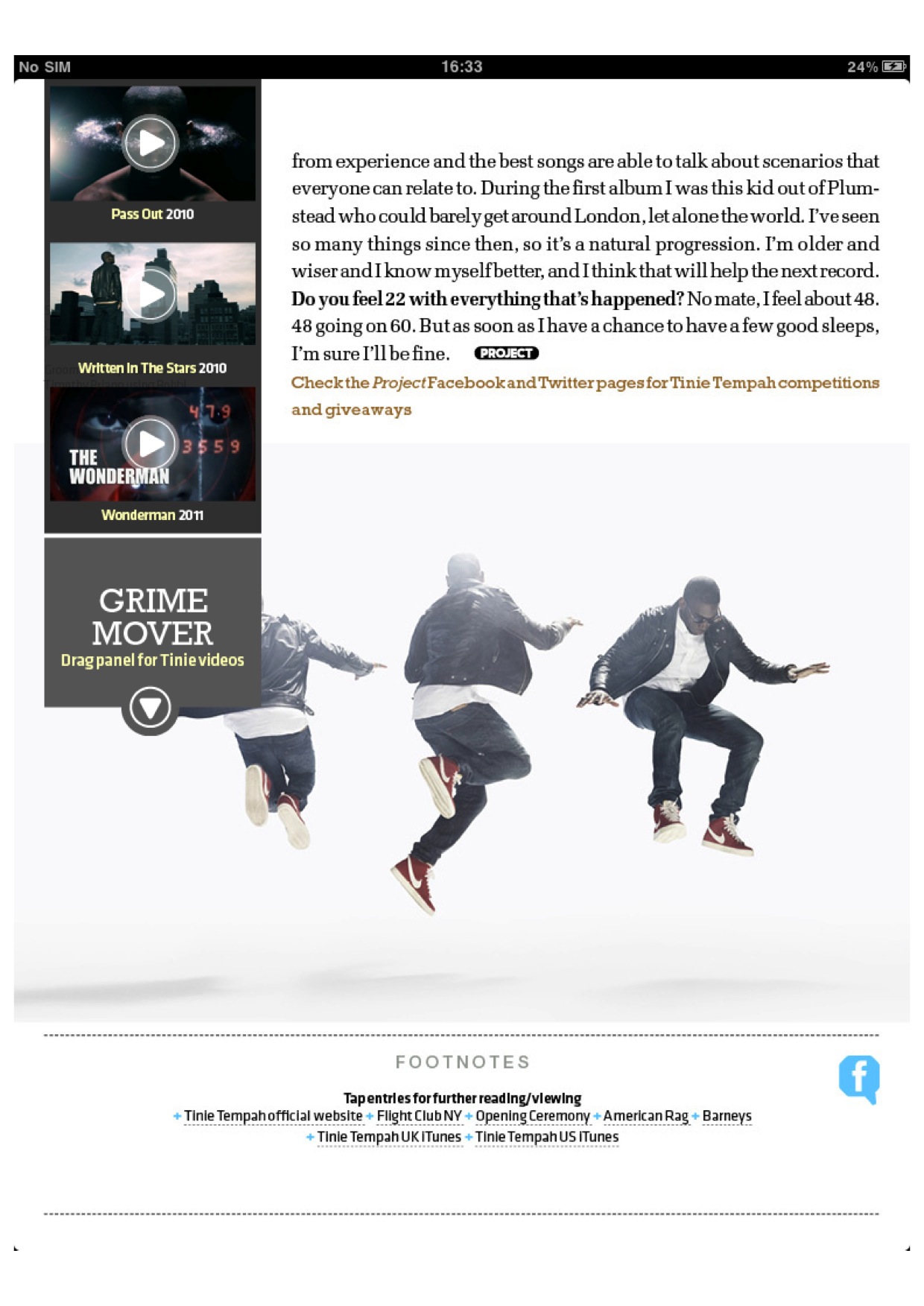 Tinie Tempah, Project Cover feature on Tinie Tempah for issue 7 of Project, the men’s magazine published on iPad. Share this: Click to share on X (Opens in new window) X Click to share on Facebook (Opens in new window) Facebook Like Loading... Related Leave a comment Cancel reply Δ