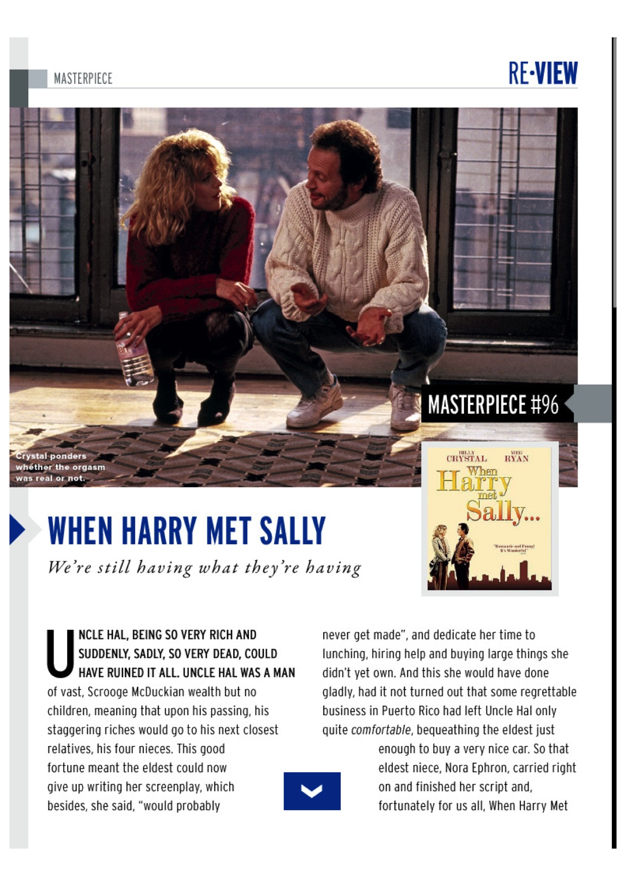 A ‘masterpiece’ review of When Harry Met Sally* for the April ’12 issue of Empire magazine. (*Because obviously it is the greatest romantic comedy in history)