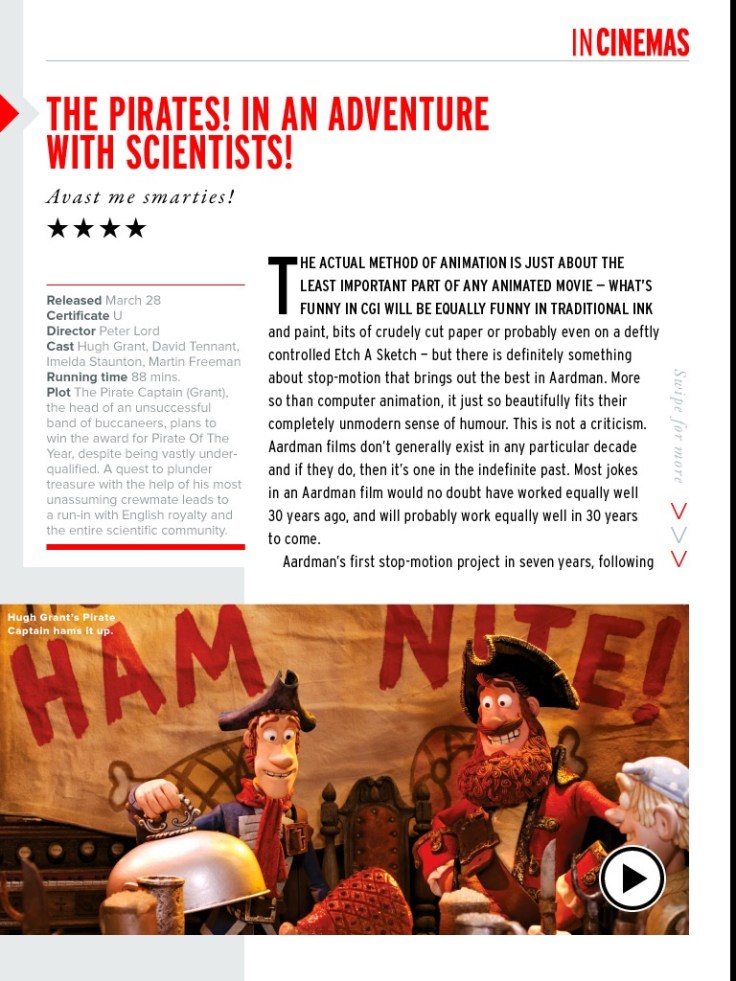 The Pirates!… Review, Empire Review of The Pirates! In An Adventure With Scientists! for Empire magazine (exclamation marks theirs, not mine). Please click the image to read the full review on the Empire website. Like Loading... Related Leave a comment Cancel reply Δ